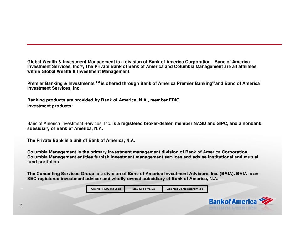 Banking products are provided by Bank of America, N.A. and affiliated banks, Members FDIC and wholly owned subsidiaries of Bank of America Corporation. MLPF&S is a registered broker-dealer, Member SIPC and a wholly owned subsidiary of Bank of America Corporation. ... Document Viewer